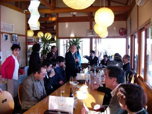 | 終了後小山先生、出演者、ご遺族を囲んでの懇親会 (音楽村入口 そば店「花しずく」にて) |