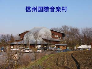 信州国際音楽村は屋内外に コンサートホールを持ち、 自主事業のほかいろいろ演奏会が行われている。 また広い敷地には、スイセンやラベンダーが植えられ、 それらイベントの観光客も多い。 |
