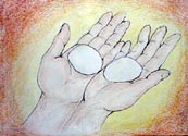 若者は夜遅く家の戸口に立っている娘に驚きながらも 娘を喜んで家の中へ迎え入れた 娘の手の米は、いつの間にかつきたての餅に変わっていた ふたりはその餅を食べながら幸せだった |